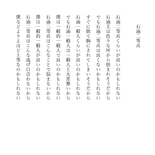 その後、石油二等兵という語感だけがどんどん頭に刷り込まれ、詩ができていきました。